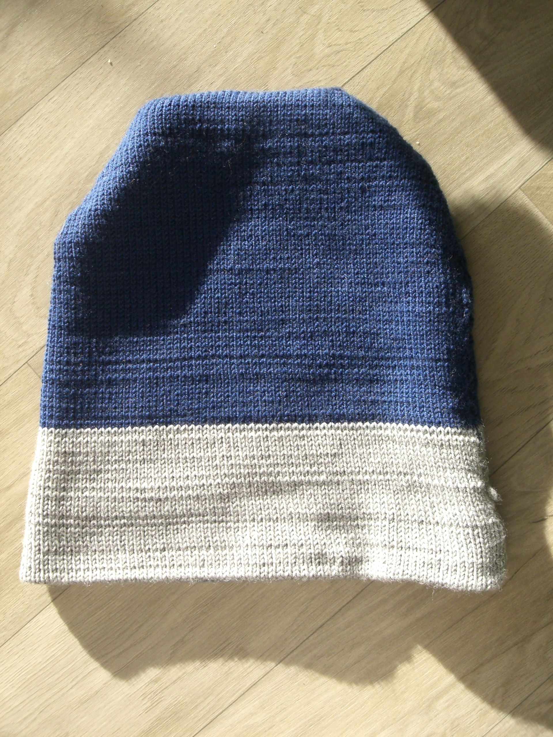 I wanted some crown-shaping but also two layers, I couldn't find a pattern so I reverse engineered my own by using a commercially made beanie!