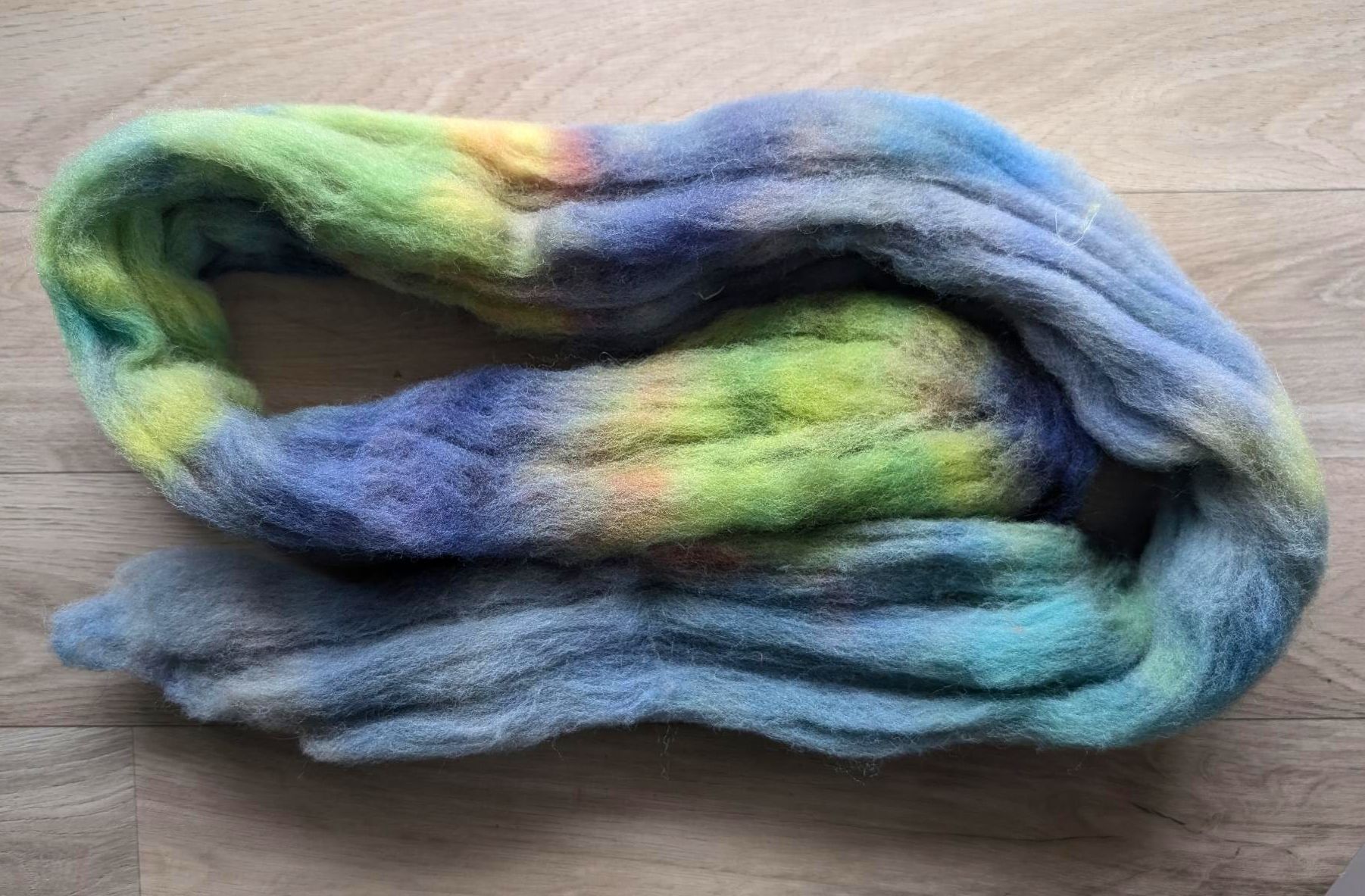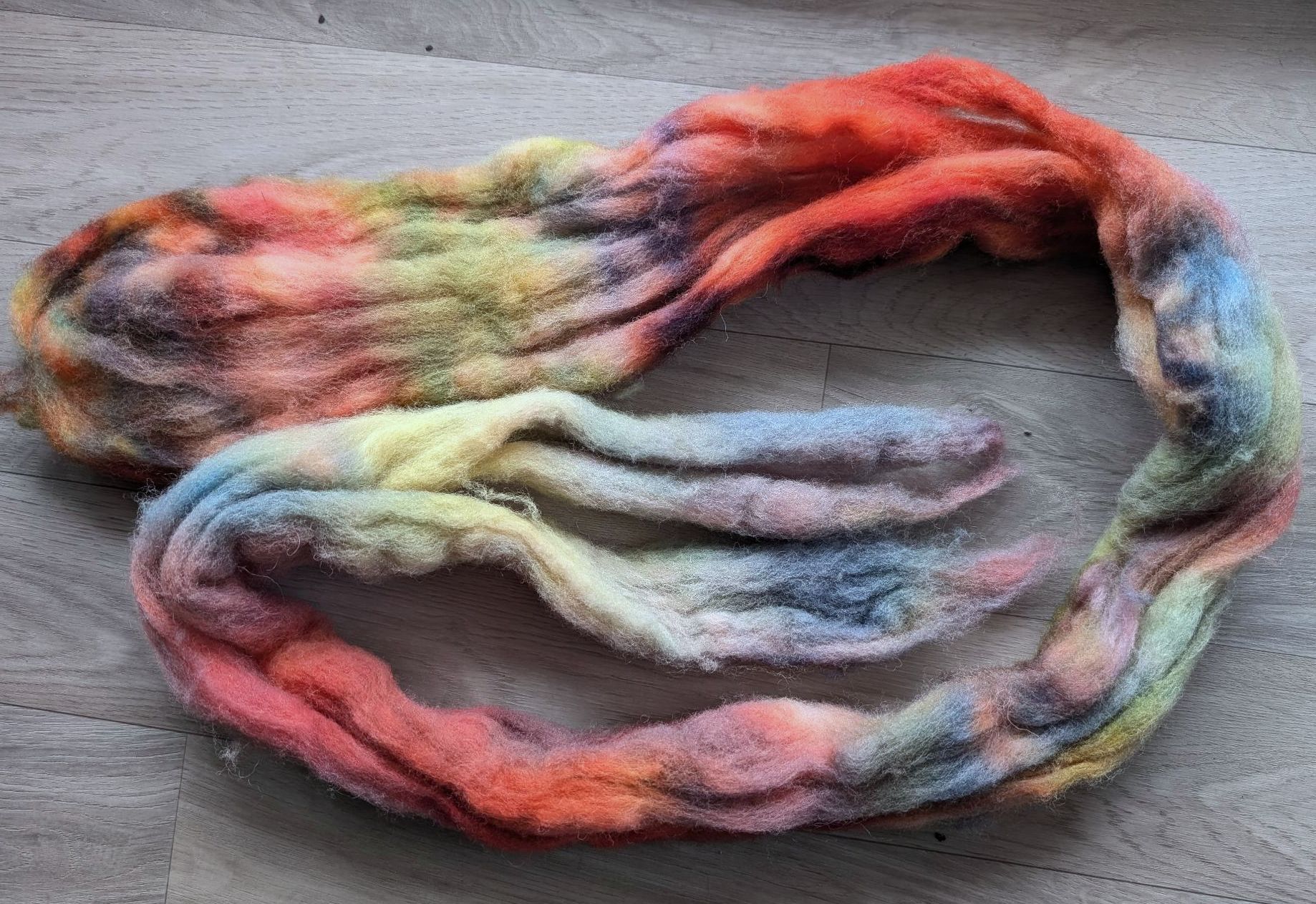 I dyed 2 X 50g of meriono wool, in the "just fuck it up" style. My scale isn't accurate enough for this and I could not find out what acidity the dyes need. All say use X amount of vinegar but what concentration? It comes in 5% 15% 20% or even 25% (from what I have seen yet.) Also the acidity of ones tap water can change things up! So the first batch didn't set properly due probably too low concentration of acid.